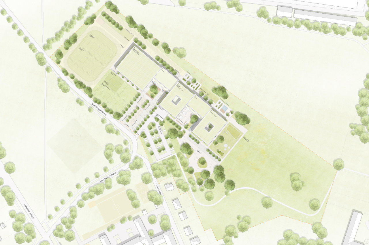 Errichtung eines 4-zügigen Gymnasiums mit Drei-Feld-Sporthalle mit der Option auf 6-zügige Erweiterung