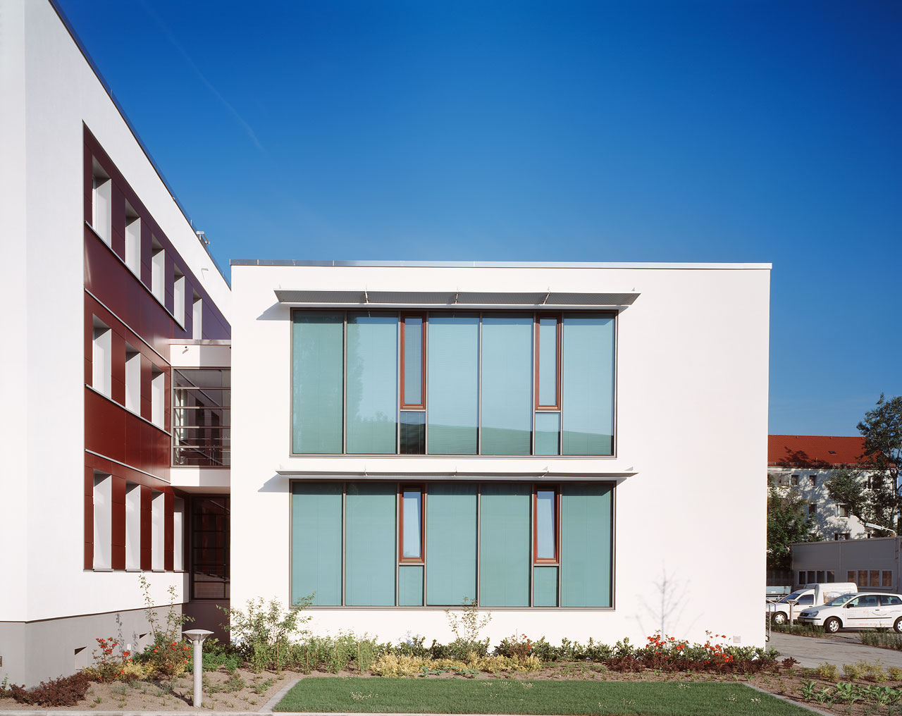 Die notwendige räumliche Erweiterung erfolgte deshalb durch einen zweigeschossigen, hofseitigen Neubau, der baulich mit dem Altbau verbunden wurde.